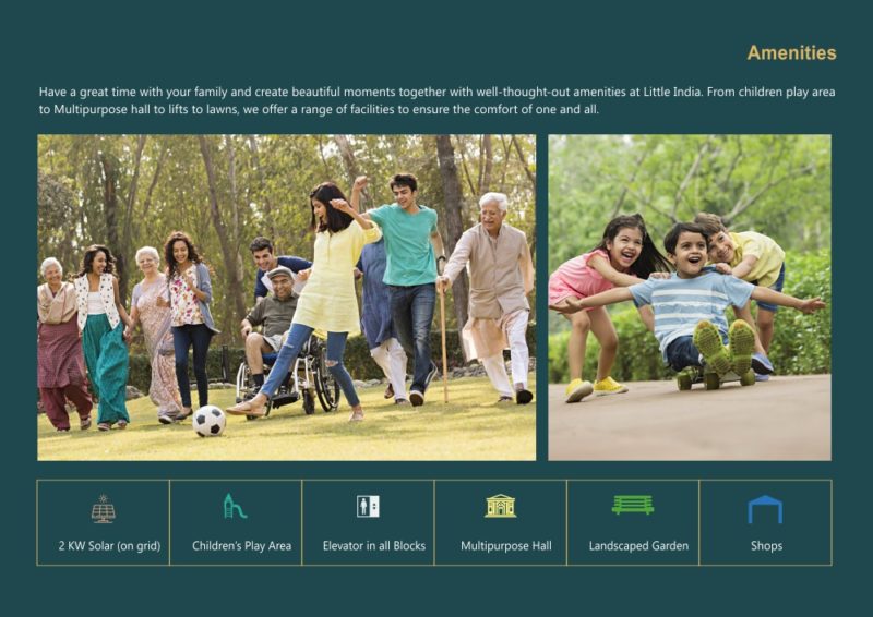 Little India by PKR Estates has been specially conceptualised to celebrate community living while enabling people to connect with the environment through sports, games, community bonding and recreational facilities. With more than 300+ neighbours residing within the premises, you will never get the feeling of being new at your own home. Here your kids will find many friends to play and grow up with, while you’ll get the chance to build new relationships and a network of close friends and families.