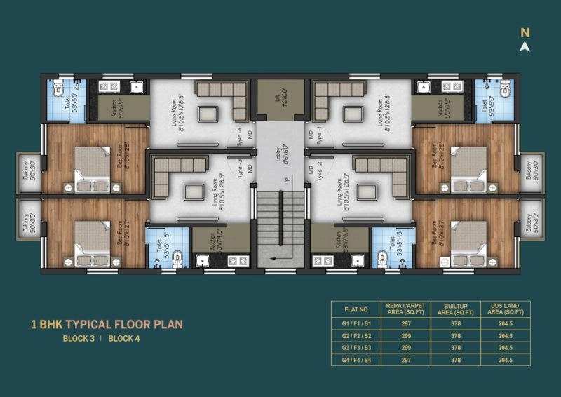Block 3 & 4 Price : 1 BHK @ Rs. 14.66 Lakhs